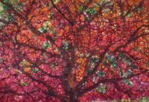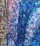 My batiks use a technique of dripping melted crayon followed by a black dye bath to create impressionistic views of nature scenes. Batiks are wax & dye on cloth stretched over canvas or foam core. A few include embroidery. All are framed in black or brown wood gallery frames.